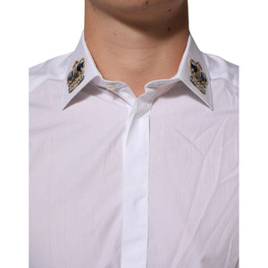 Dolce & Gabbana White Crown Collared GOLD Formal Dress Shirt