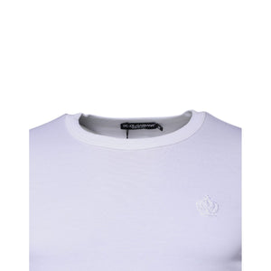 Dolce & Gabbana White Crown Crew Neck Cotton Pullover Sweater