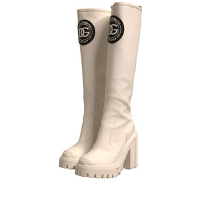 Dolce & Gabbana White DG Logo Hi Trekking Plateau Biker Boots Shoes