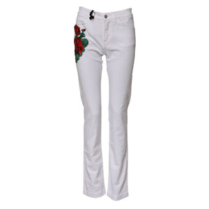 Dolce & Gabbana White Floral Embroidery GIRLY Denim Jeans