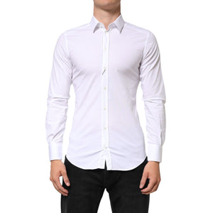 Dolce & Gabbana White GOLD Cotton Long Sleeves Dress Men Shirt