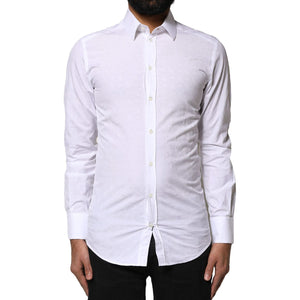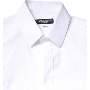 Dolce & Gabbana White GOLD Cotton Long Sleeves Dress Shirt