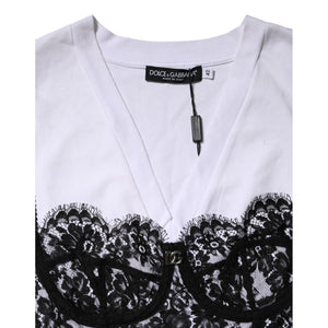 Dolce & Gabbana White Lace Cotton V-Neck Short Sleeves Top