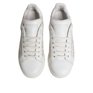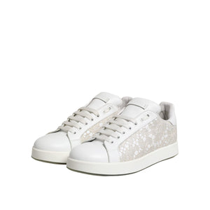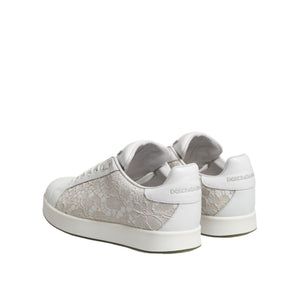 Dolce & Gabbana White Lace Leather Low Top Sneaker Shoes