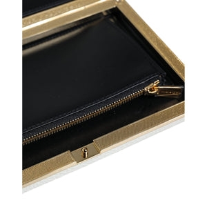 Dolce & Gabbana White Leather Gold Frame Clutch Evening Party Purse Bag