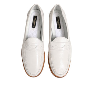 Dolce & Gabbana White Leather Loafers Moccasins Slip On Shoes