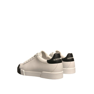 Dolce & Gabbana White Leather Logo Portofino Sneakers Shoes