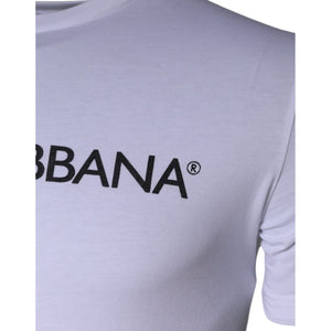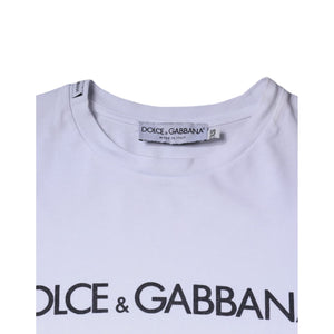 • Dolce & Gabbana White Logo Print Cotton Crew Neck T-shirt