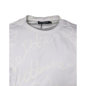Dolce & Gabbana White Logo Print Cotton Crew Neck T-shirt
