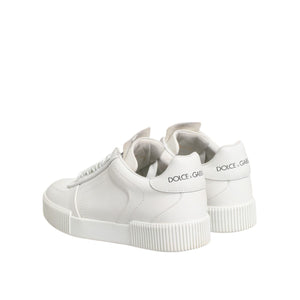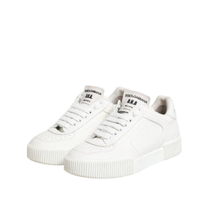 Dolce & Gabbana White Miami Leather Low Top Sneakers Shoes with minimalist design and durable rubber sole for everyday comfort and style.