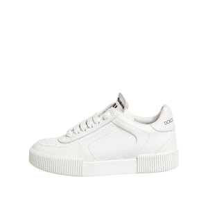Dolce & Gabbana White Miami Leather Low Top Sneakers Shoes, featuring minimalist design and refined craftsmanship for stylish comfort.