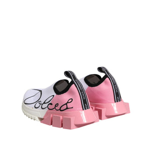 Gorgeous, 100% Authentic Dolce & Gabbana Sorrento sneakers in a stylish white and pink color combination. These low-top slip-on sneakers feature a modern, sporty silhouette with a stretch-knit upper for maximum comfort and flexibility. The design is finished with logo detailing and a sculpted rubber sole, making them both fashionable and functional.