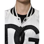 Dolce & Gabbana White Polyester Logo Full Zip Bomber Jacket