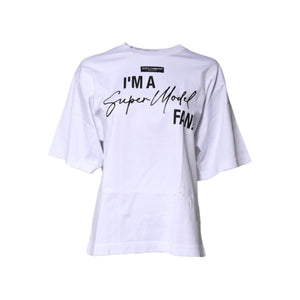 Dolce & Gabbana White Printed Cotton Round Neck Top T-shirt