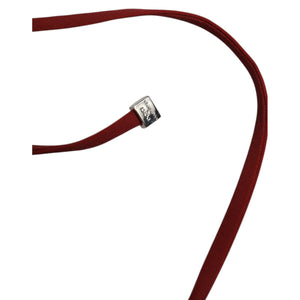 Adjustable burgundy tie straps with metallic ends, reversible style