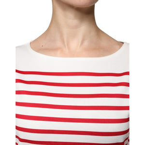 • Dolce & Gabbana White Red Stripes Cotton Long Sleeves Top
