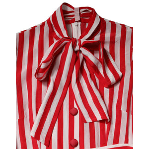 Dolce & Gabbana White Red Stripes Long Sleeves Midi Dress