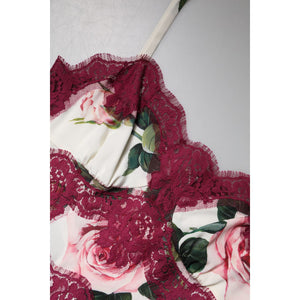 Dolce & Gabbana White Rose Print Satin Lace Tank Top Lingerie