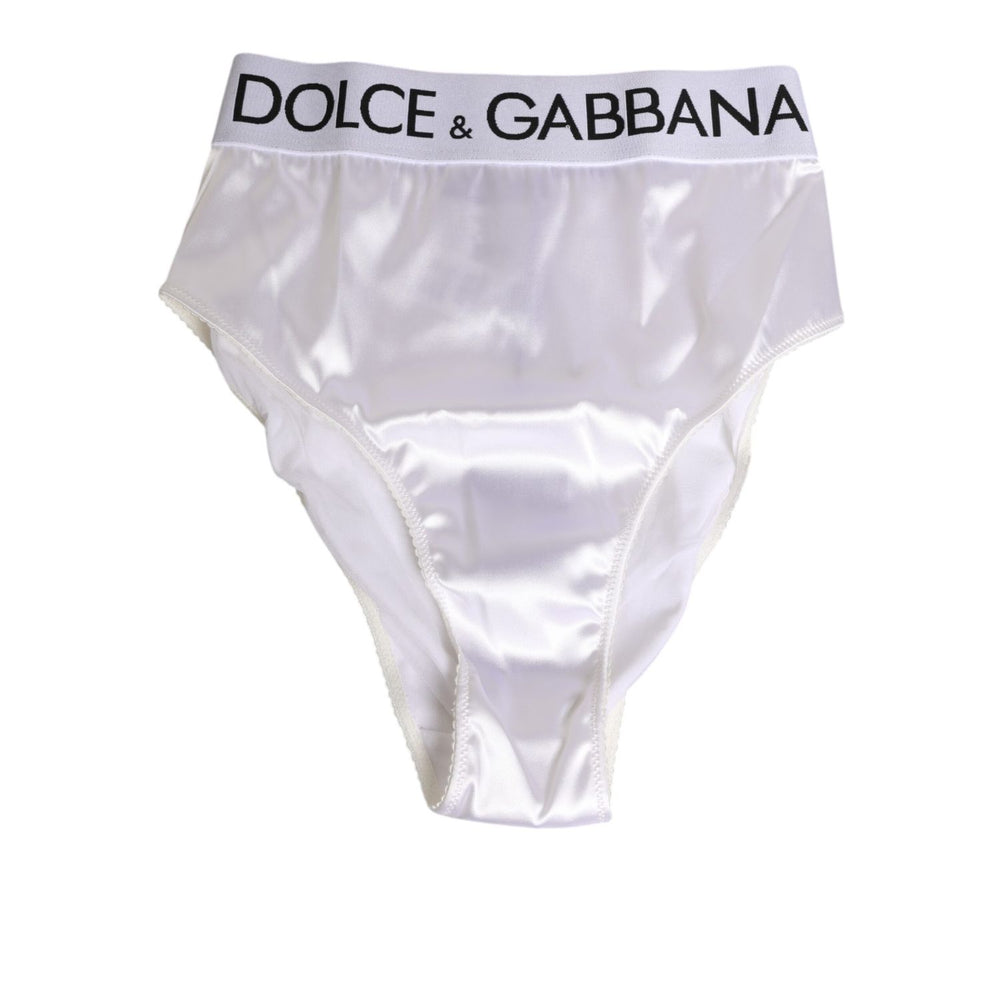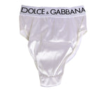 Dolce & Gabbana White Satin High-Waist Brief Logo Women Underwear