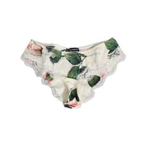 Gorgeous brand new, 100% Authentic Dolce & Gabbana white silk satin panties with tropical rose print and lace trim. Elegant, feminine design with a luxurious feel. Made in Italy.