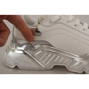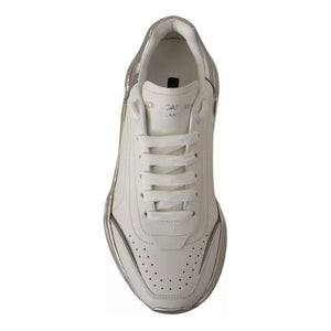 Dolce & Gabbana White Silver Leather Daymaster Sneakers Shoes