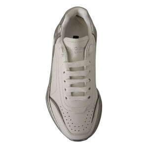 Dolce & Gabbana White Silver Leather Daymaster Sneakers Shoes