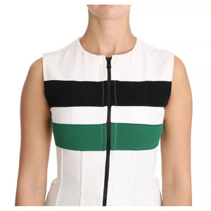 Gorgeous brand new with tags, 100% Authentic Dolce & Gabbana White, black and green stripes cotton sleeveless top with full zip closure.