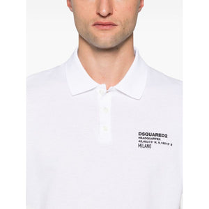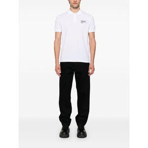 white cotton piqué weave logo print at the chest polo collar short sleeves straight hem short front button fastening Logo cotton polo shirt Size and Fit - This piece fits true to size. We recommend you get your regular size. Model is 1,84m / 6ft 1in wearing size M