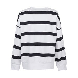 Crew-neck sweatshirt with long sleeves, striped, white and blue, EA7 logo in red, straight hem. Cotton crewneck sweatshirt Size and Fit - This piece fits true to size. We recommend you get your regular size. Model is 1,75m / 5ft 8in wearing size S