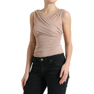 Dolce & Gabbana Beige Viscose V-neck Sleeveless Tank Top