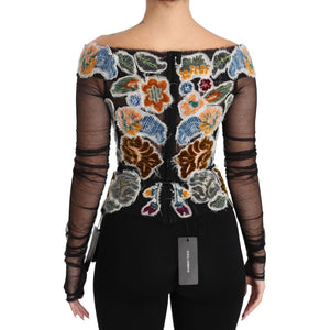 Dolce & Gabbana Black Floral Ricamo Top T-shirt Blouse