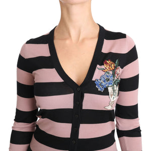 Dolce & Gabbana Pink Floral Cashmere Cardigan Sweater