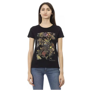 Elevate your wardrobe with a dash of distinction courtesy of Trussardi Action. This short sleeve T-shirt isn’t just a piece of clothing; it’s a statement. With a sleek black hue complemented by an eye-catching front print, it masterfully blends casual comfort with an air of trendy sophistication. Crafted with a blend of cotton and viscose, it promises breathability and softness against your skin. Exuding confidence and fashion-forward energy, this top is a must-have for those who dare to stand out. Perfect for a day out or a casual evening.
