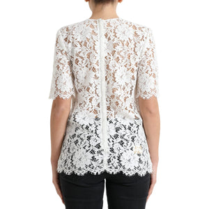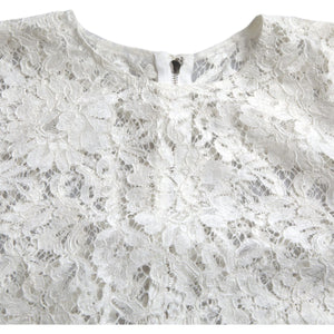 Dolce & Gabbana White Floral Lace Cotton Round Neck Blouse Top