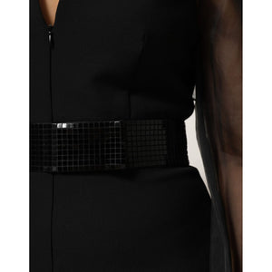 Emporio Armani Black Sheer Sleeve Belted V-Neck Mini Dress