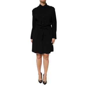 Emporio Armani Black Viscose Blend Shirt Style Belted Dress