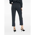 navy blue elasticated waistband two side slit pockets decorative button detailing side slits Slim fit trousers Size and Fit - This piece fits true to size. We recommend you get your regular size. Model is 1,75m / 5ft 8in wearing size 40 (IT)