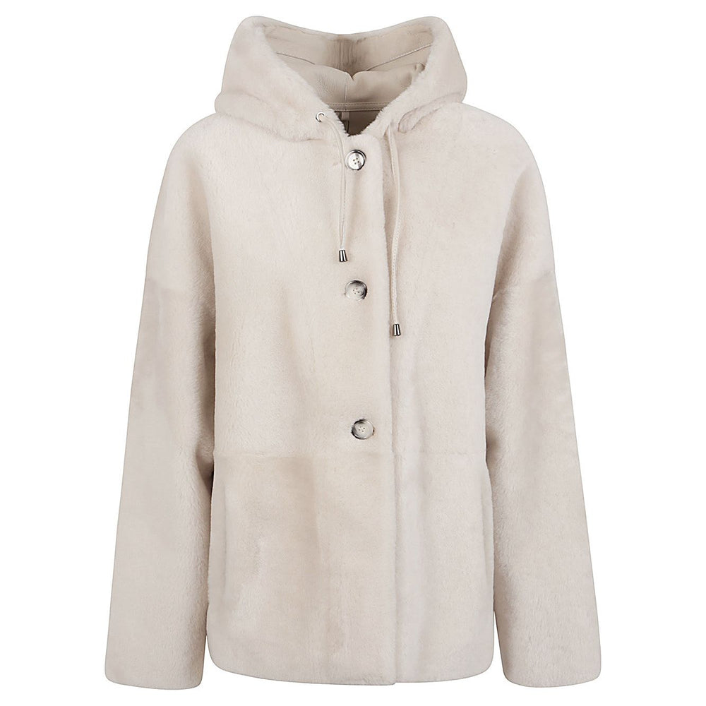 Jacket with hood, long sleeves, dropped shoulders, front button closure and two welt pockets. Fur hooded jacket Size and Fit - This piece fits true to size. We recommend you get your regular size. Model is 1,75m / 5ft 8in wearing size 36 (FR)