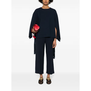 navy blue cady texture crew neck drop shoulder long open wide sleeves open sides straight hem side tie fastening single rear button fastening Cady texture blouse Size and Fit - This piece fits true to size. We recommend you get your regular size. Model is 1,75m / 5ft 8in wearing size 40 (IT)