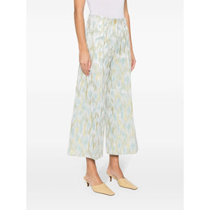 silver-tone/sunflower yellow/sky blue metallic threading patterned jacquard belt loops pressed crease two side inset pockets rear welt pocket cropped wide leg concealed fly and button fastening Printed cropped trousers Size and Fit - This piece fits true to size. We recommend you get your regular size. Model is 1,75m / 5ft 8in wearing size 40 (IT)
