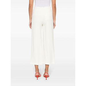 ivory white cady texture belt loops pressed crease two diagonal pockets to the sides rear welt pocket straight leg cropped concealed fly and button fastening Wide-leg trousers Size and Fit - This piece fits true to size. We recommend you get your regular size. Model is 1,75m / 5ft 8in wearing size 40 (IT)