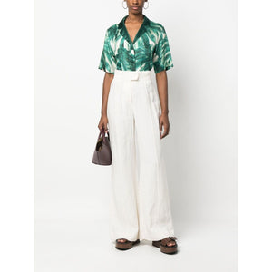 a palazzo, stampa ramo giapponese Printed silk pajama shirt Size and Fit - This piece fits true to size. We recommend you get your regular size. Model is 1,75m / 5ft 8in wearing size S