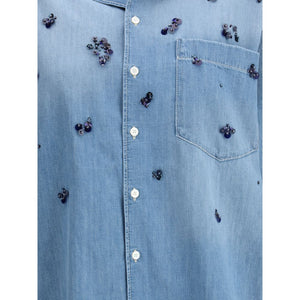 Fabiana Filippi’s Denim Shirt combines the casual spirit of denim with precious and feminine details. Featuring a classic collar, short sleeves and a patch pocket on the front, it has a button closure and refined sequin and bead appliqués that illuminate the garment with discreet elegance.