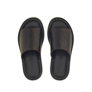 crossover-strap leather slides from Ferragamo featuring crossover strap detail, slip-on style, open toe, flat rubber sole, branded insole, black and calf leather. Leather flat sandals Size and Fit - Our boutique offers the following fittings for Salvatore Ferragamo shoes: EEE (extra wide) for men shoes, M (medium) for sporty women shoes and C (wide) for classic women shoes. Do not hesitate to contact us to have more information.