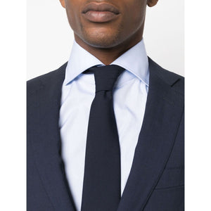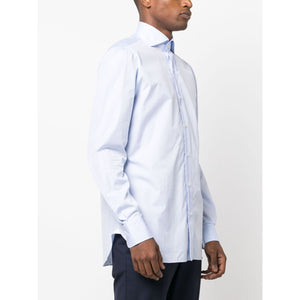 light blue cotton cutaway collar front button fastening long sleeves buttoned cuffs curved hem Napoli cotton shirt