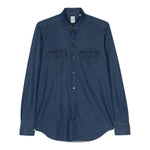 indigo blue cotton chambray classic collar long sleeves press-stud fastening cuffs two chest flap pockets curved hem front press-stud fastening Slim fit denim shirt Size and Fit - This piece fits true to size. We recommend you get your regular size. Model is 1,84m / 6ft 1in wearing size 39 (COLLAR CM)