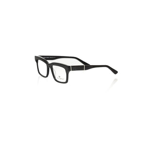 • Frankie Morello Black Acetate Unisex Frame with geometric pattern and colored temples.