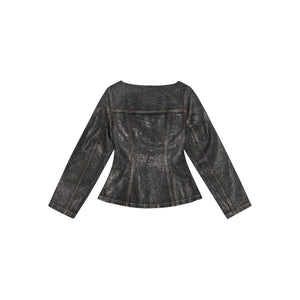 two chest flap pockets Denim cotton blazer jacket