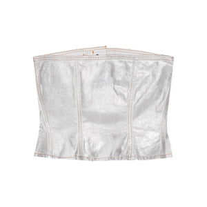 silver-tone organic cotton foiled finish denim gold-tone buttons square neck front button fastening sleeveless two front flap pockets straight hem This item is made from at least 50% organic materials. Learn more about what makes a product Conscious on our Conscious Criteria page Organic cotton denim corset