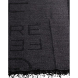 GF Ferre Dark Gray Wool Viscose Foulard Patterned Scarf